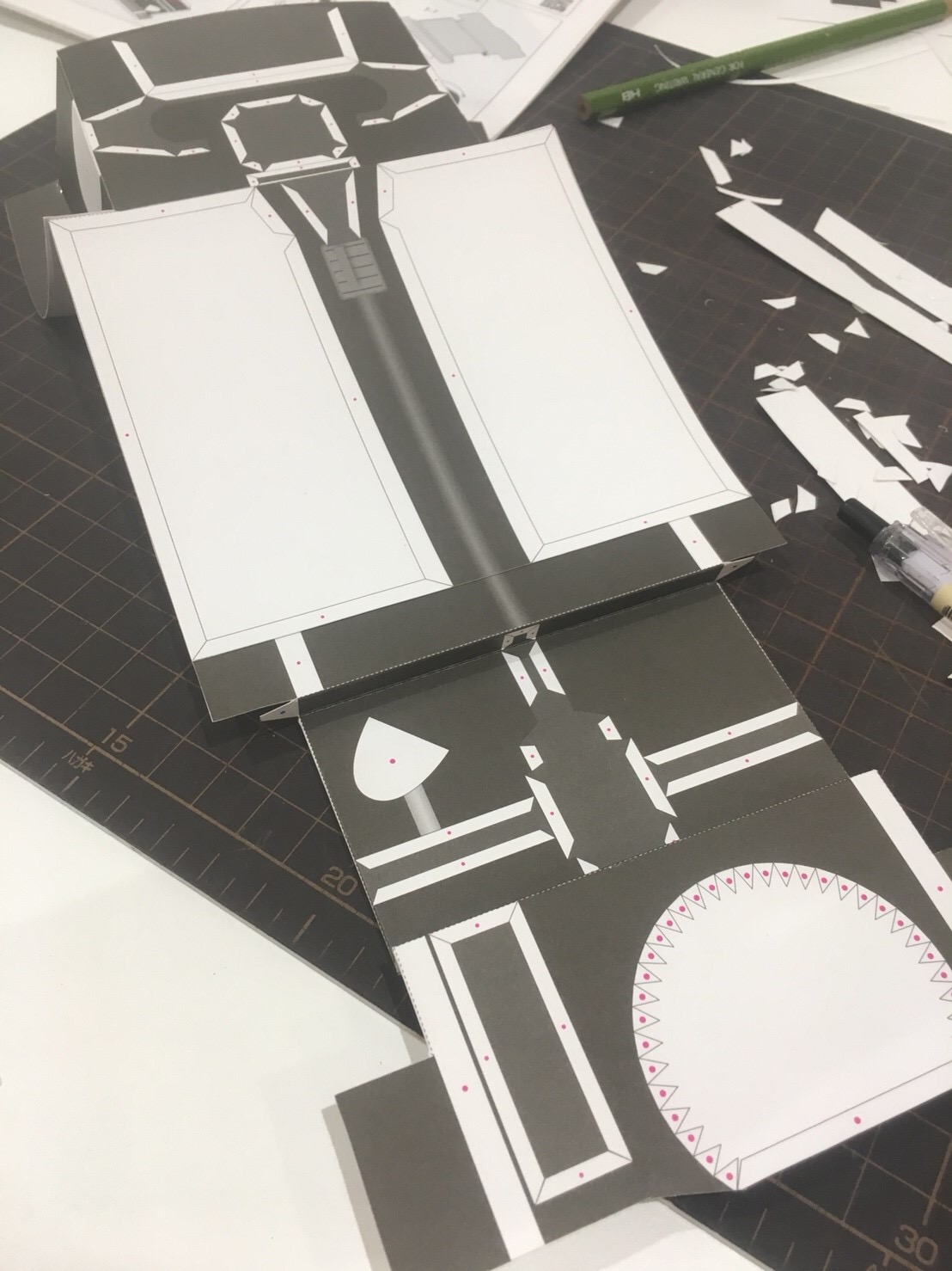 前回は、中身の説明や必要な道具をご紹介しましたが、いよいよ、コスモスポーツ ペーパークラフト 製作を開始していきます!出勤日が待ち遠しかったです。