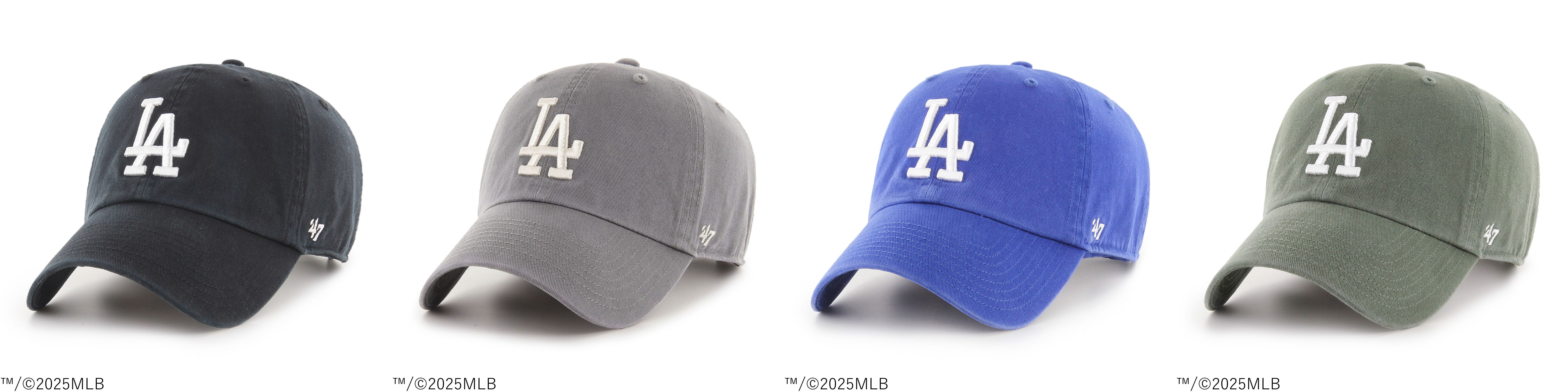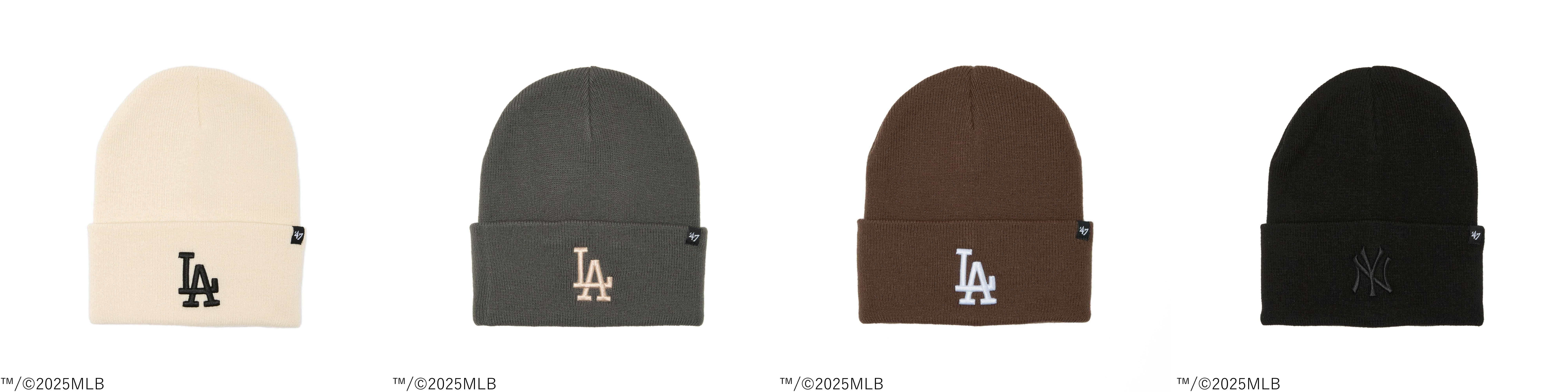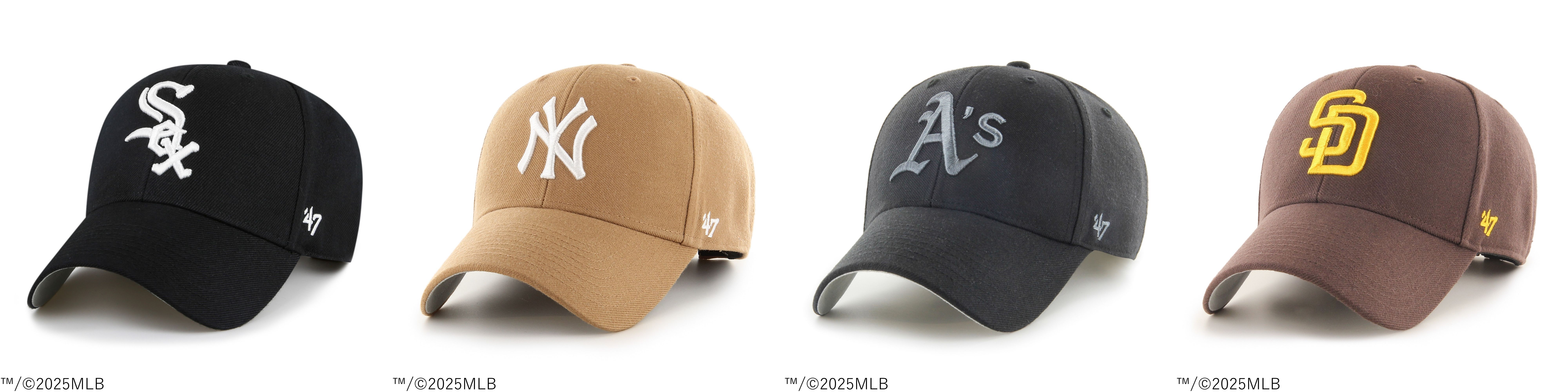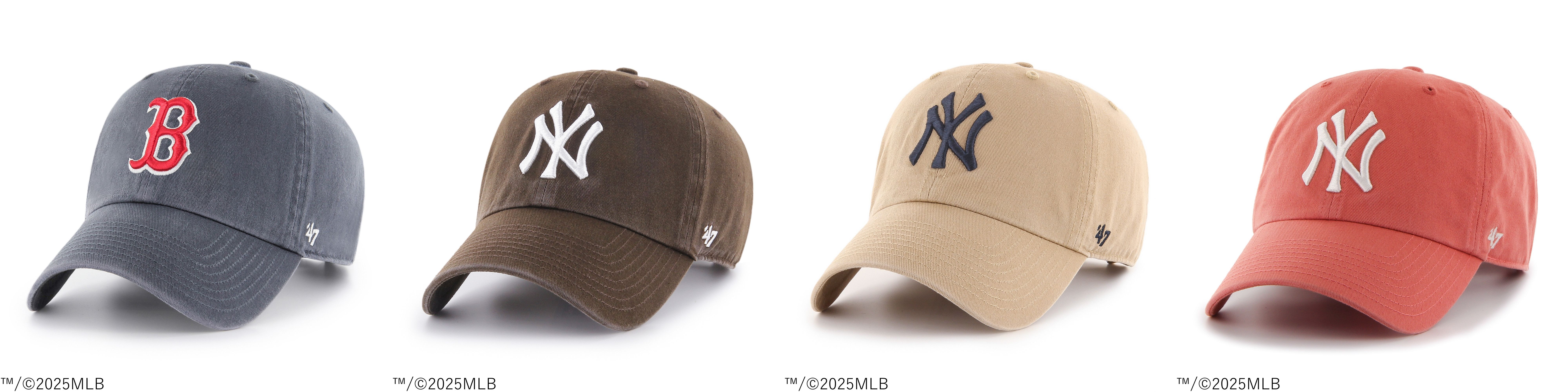 肌寒さが増すこれからの季節に向けて、ブランドを代表する定番シルエット「CLEAN UP(クリーンナップ)」をはじめ、「MVP(エムブイピー)」「CAPTAIN(キャプテン)」、さらにニットキャップなど、秋冬のスタイリングにあたたかみを添える多彩なラインナップが登場します。ロサンゼルス・ドジャースやニューヨーク・ヤンキースをはじめ、’47でも人気の高いMLB球団ロゴのキャップもご用意しています。また、キャップ・ハットをより快適に着用いただくためのアクセサリーとして、抗菌・消臭効果を備えたキャップライナーもあわせて販売いたします。