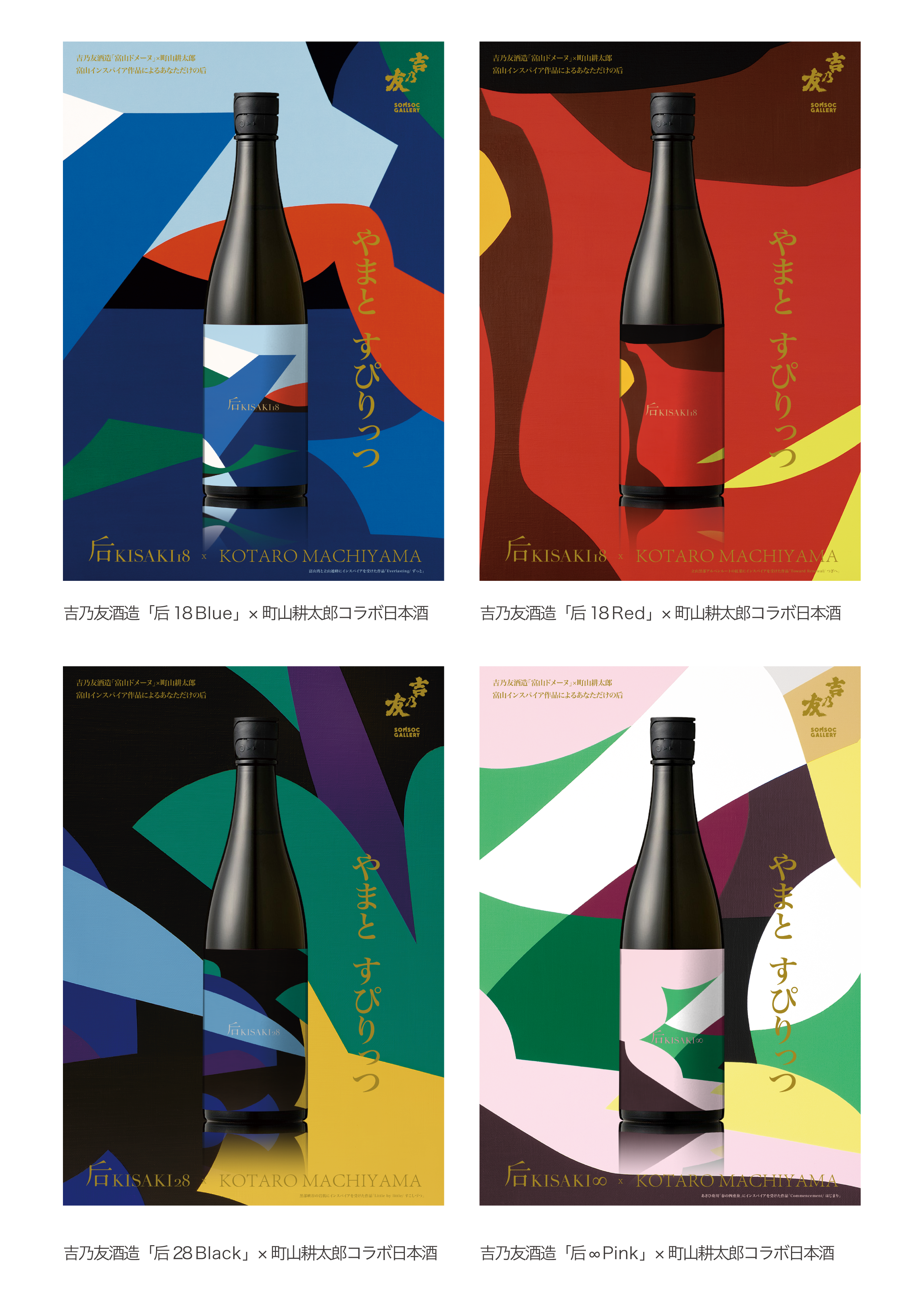 「后」最高級ラインには、町山耕太郎の作品と、友禅染色家・石井佑宇馬の作品がリバーシブルに手染めされた友禅風呂敷が付属します。日本酒ラベル・化粧箱・ギフト風呂敷の3点どれもが、アート作品としての鑑賞に耐えうるものになっております。