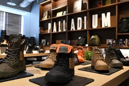 PALLADIUM(パラディウム)は、航空機専用のタイヤメーカーとして1920年代にフランスで創業。第二次世界大戦後、その技術を応用しラバーソールブーツの製造をスタート。フランス軍より、砂漠地帯で使用する軍靴というリクエストを受けて、デザートブーツの原型ともいわれる、ブランドのアイコン「PAMPA(パンパ)」シリーズが誕生。70年の歴史を経て、オーセンティック感と特徴的なソールに加え、最先端のデザインを合わせ持つフランス発ブーツスニーカーブランドとして、世界80ヶ国で展開しています。