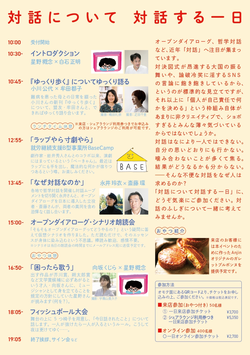 【イベント】対話について対話する一日 出演:小川公代・斎藤環・向坂くじら・永井玲衣・星野概念・牟田都子・白石正明・BaseCamp(就労継続支援B型事業所)