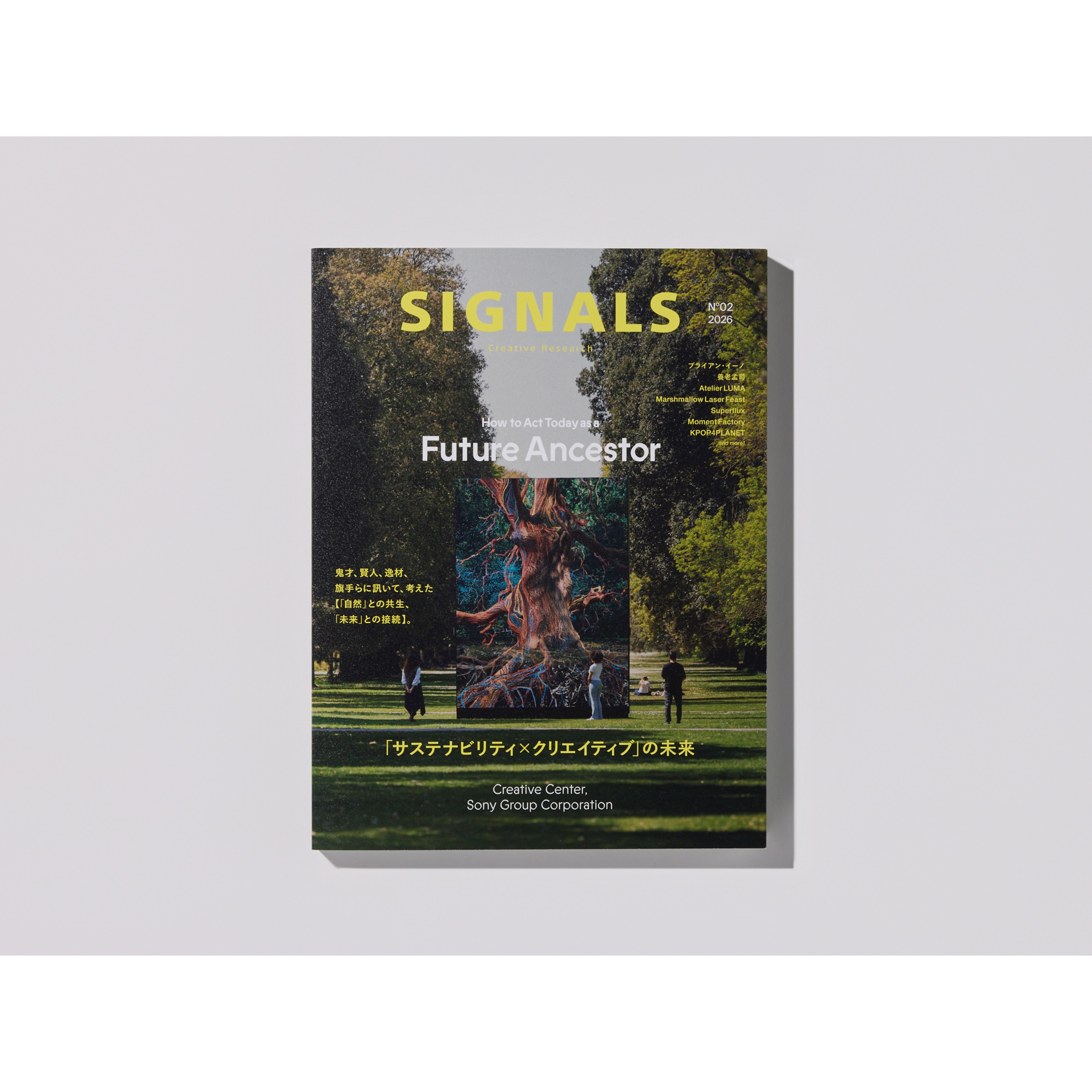 ブライアン・イーノ、養老孟司、Atelier LUMA、Marshmallow Laser Feast、Superflux、Moment Factory、KPOP4PLANET and more! 鬼才、賢人、逸材、旗手らに訊いて、考えた【「自然」との共生、「未来」との接続】。著者:ソニーグループ株式会社クリエイティブセンター/編集協力:『WIRED』日本版/発行:コンデナスト・ジャパン/発売:株式会社プレジデント社/仕様:B5変形、120ページ/定価:1,800円(本体1,636円+税10%)/発売日:2025年10月30日/