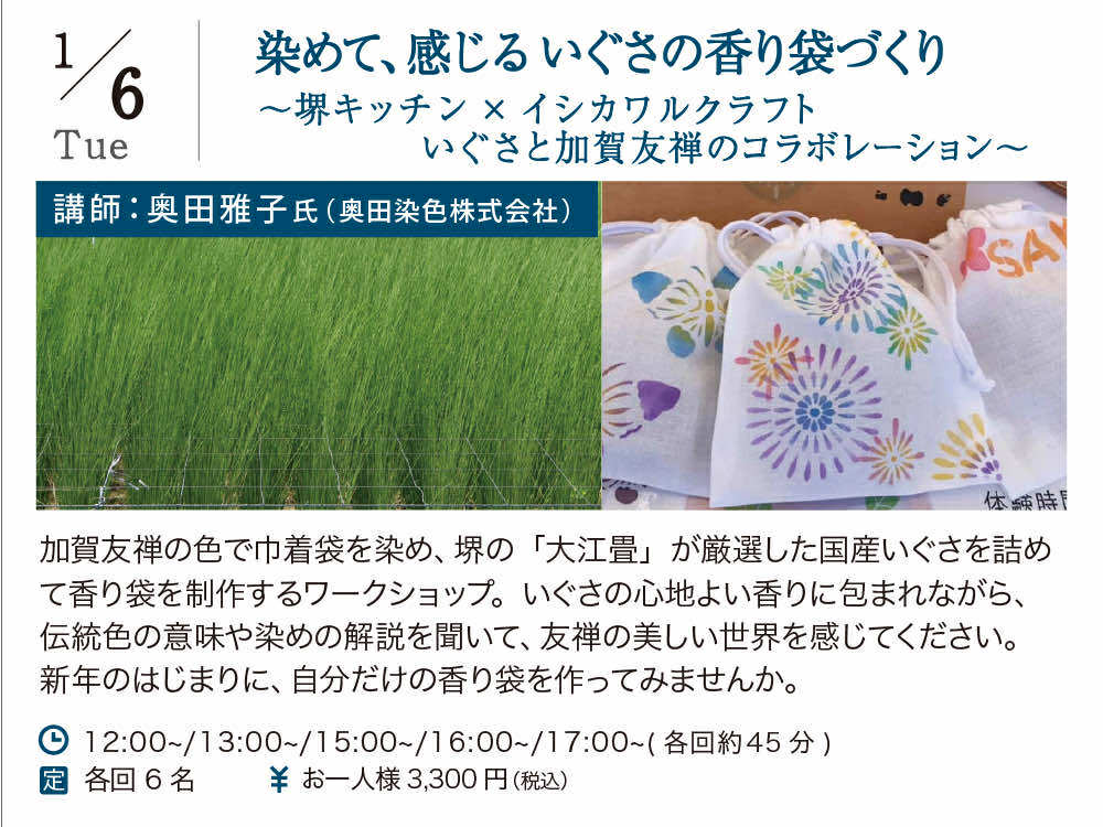 「染めて、感じるいぐさの香り袋づくり ~堺キッチン×加賀友禅のコラボレーション~」