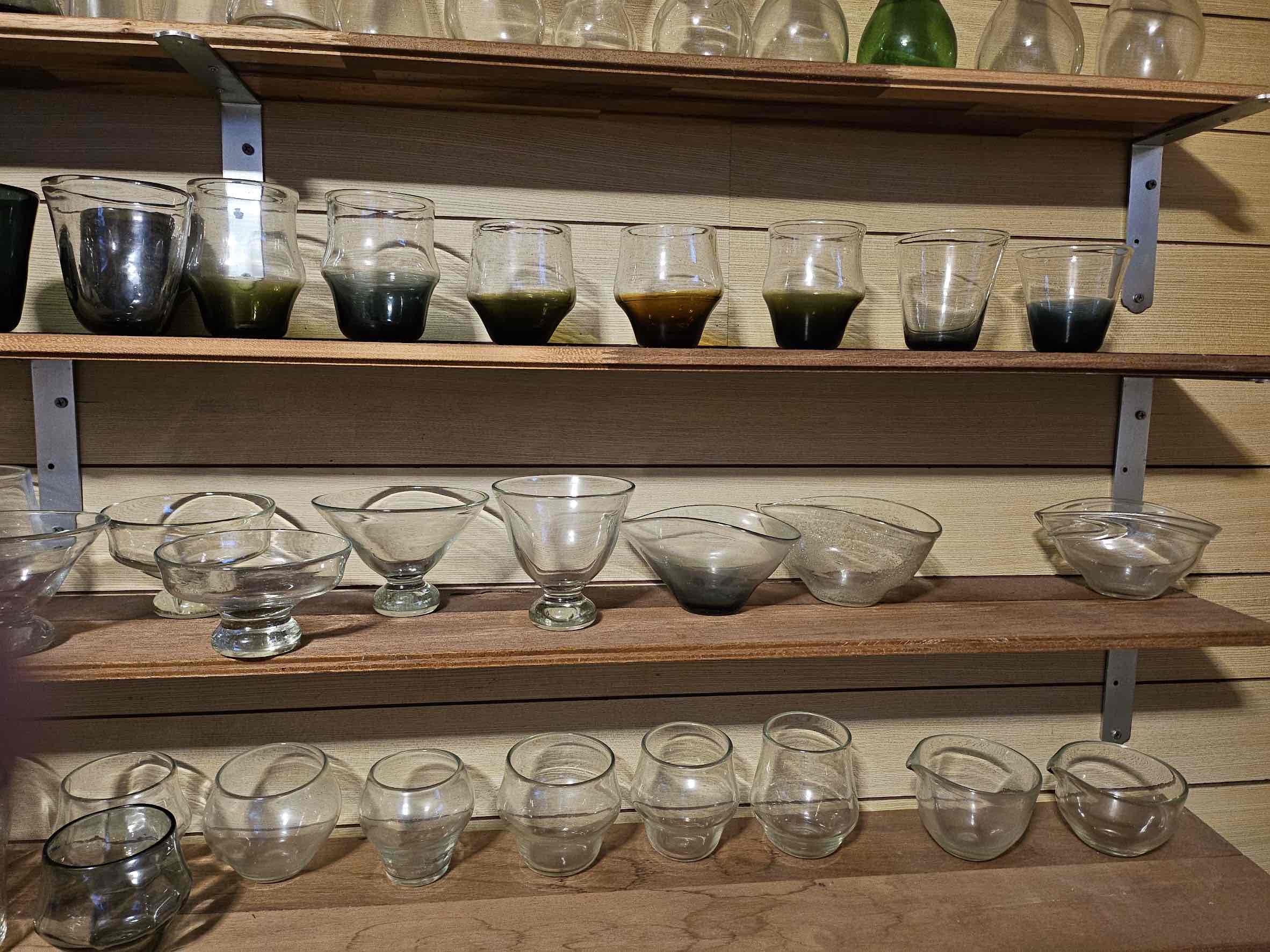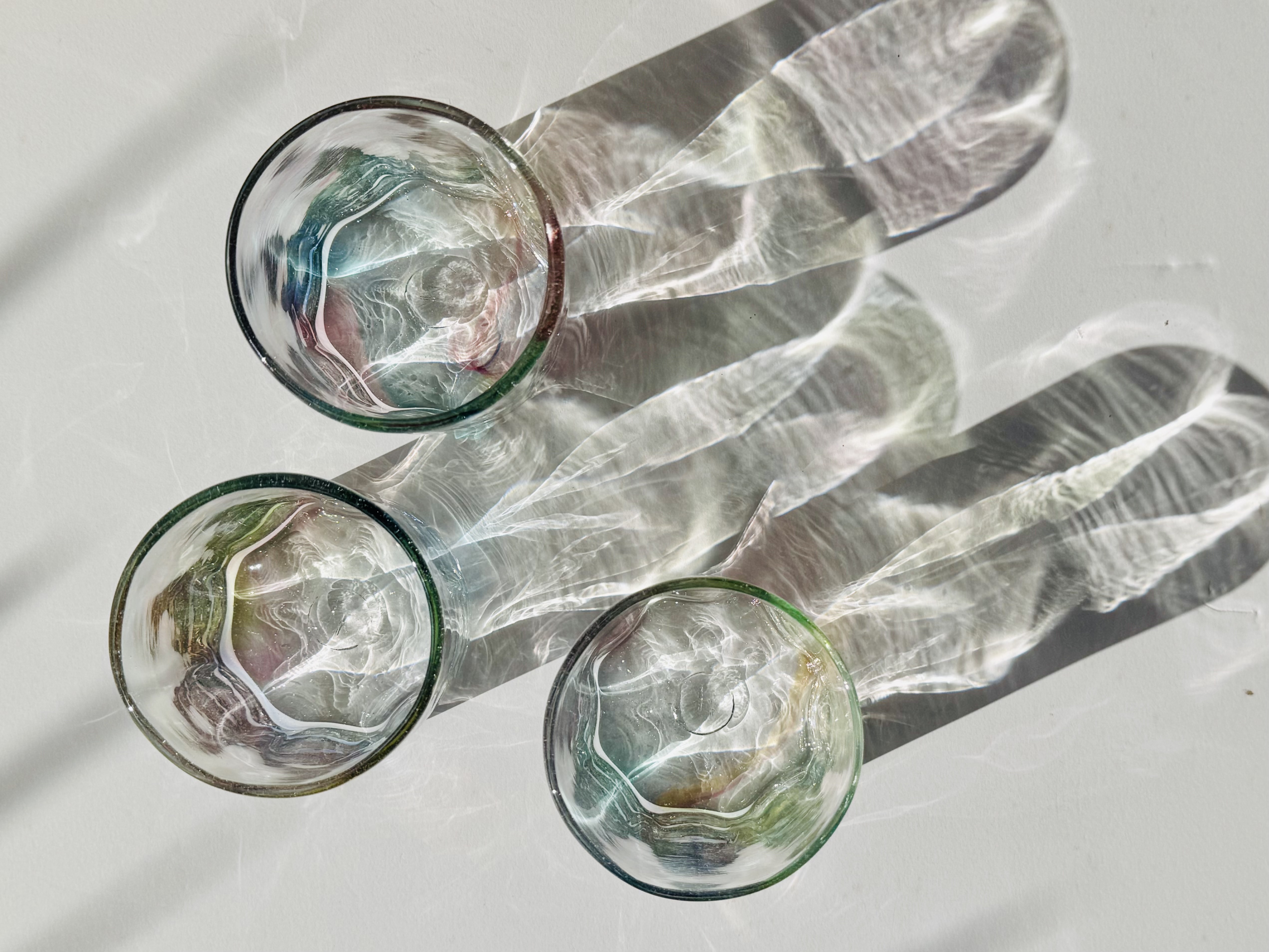 暮らしの風景にすっと馴染み、使うほどに親しみが深まるやさしい佇まいが魅力です。廃瓶を溶かして一点ずつ吹き上げる作品づくりが特徴の工房。ほどよい厚みとやわらかな曲線が、静かで落ち着いた存在感を生みます。