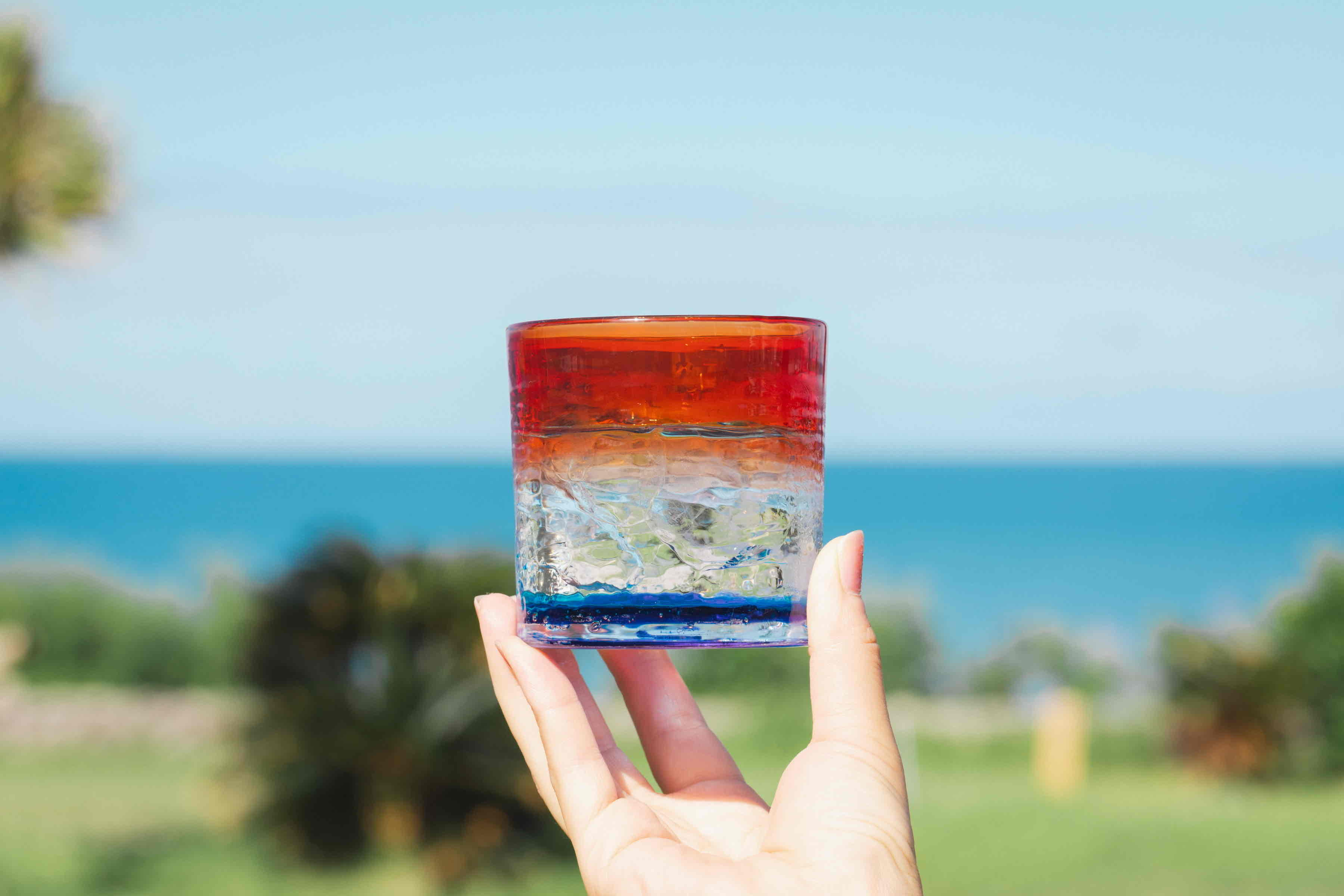 ガラスを透かす色合いや質感を楽しみながら、読谷村という土地の風景や、ものづくりの背景に思いを巡らせてみてください。