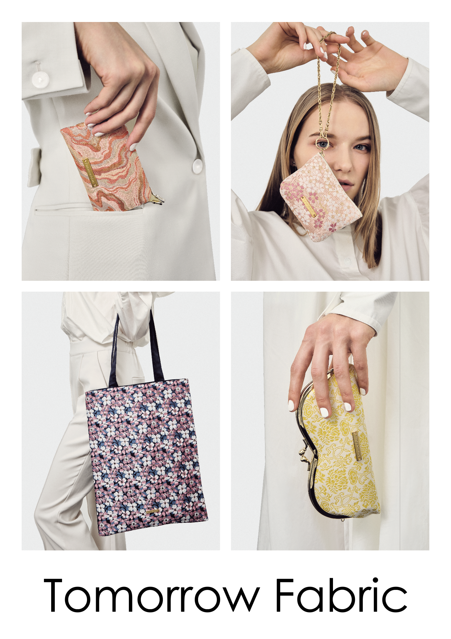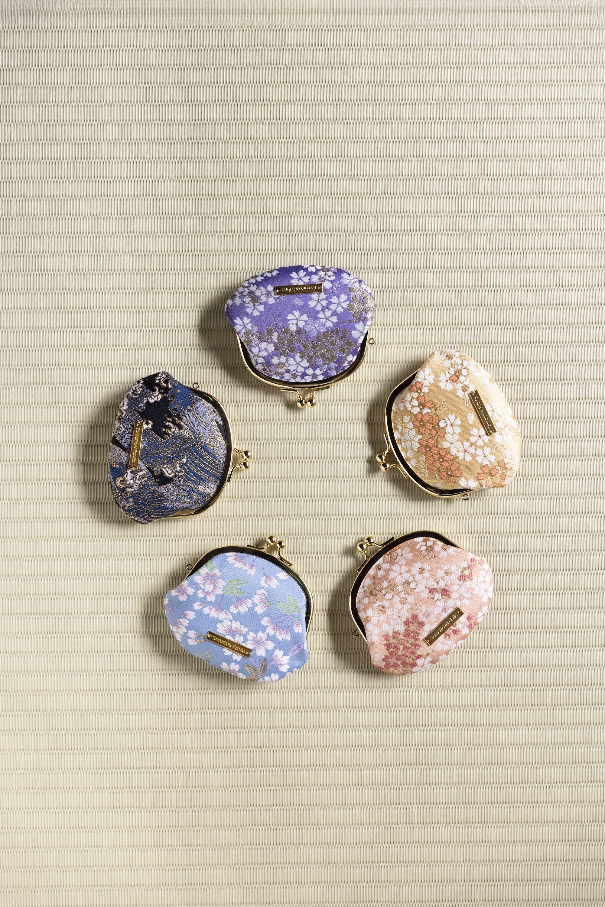 現代の職人が仕立てた西陣織にコーティングを施し、バッグ、ポーチ、財布など日常使いしやすいアイテムへと仕立てています。
