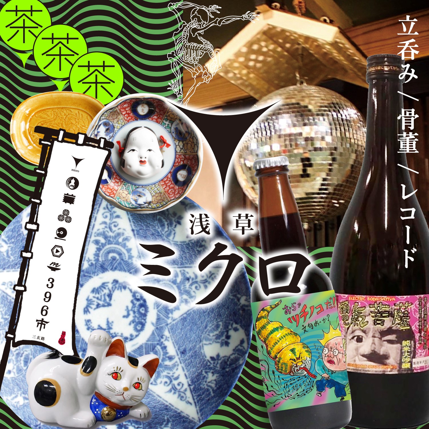 浅草ミクロ浅草の観音裏に佇む立呑み/骨董/レコード、オリジナルグッズが並ぶ独特な魅力を持つ最も小さな複合ショップ。