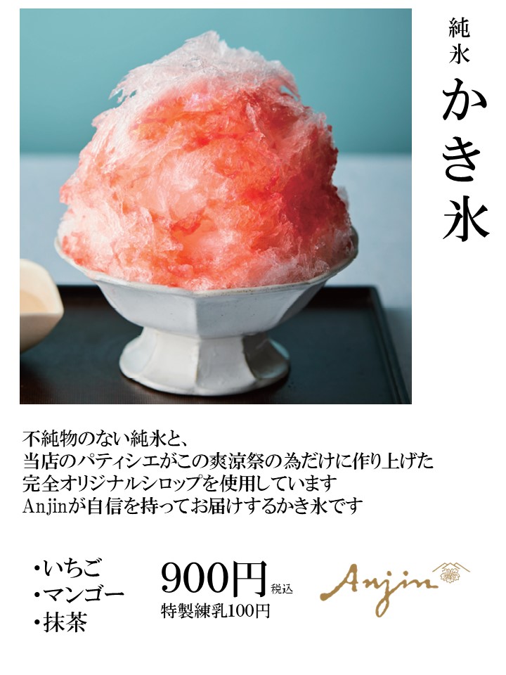 不純物のない純氷と、当店のパティシエがこの爽涼祭の為だけに作り上げた完全オリジナルシロップを使用しています。