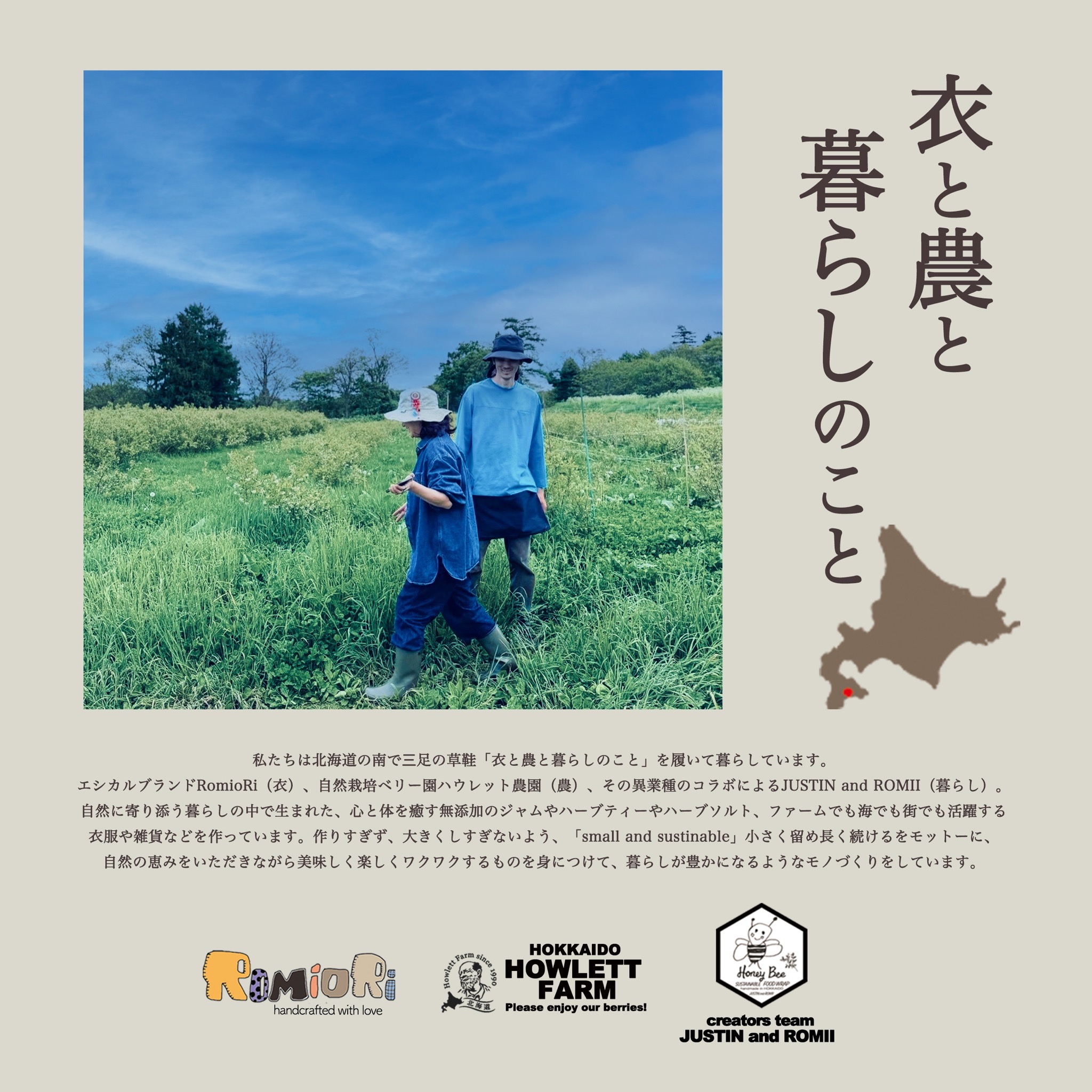 「私たちは北海道の南で三足の草鞋「衣と農と暮らしのこと」を履いて暮らしています。」