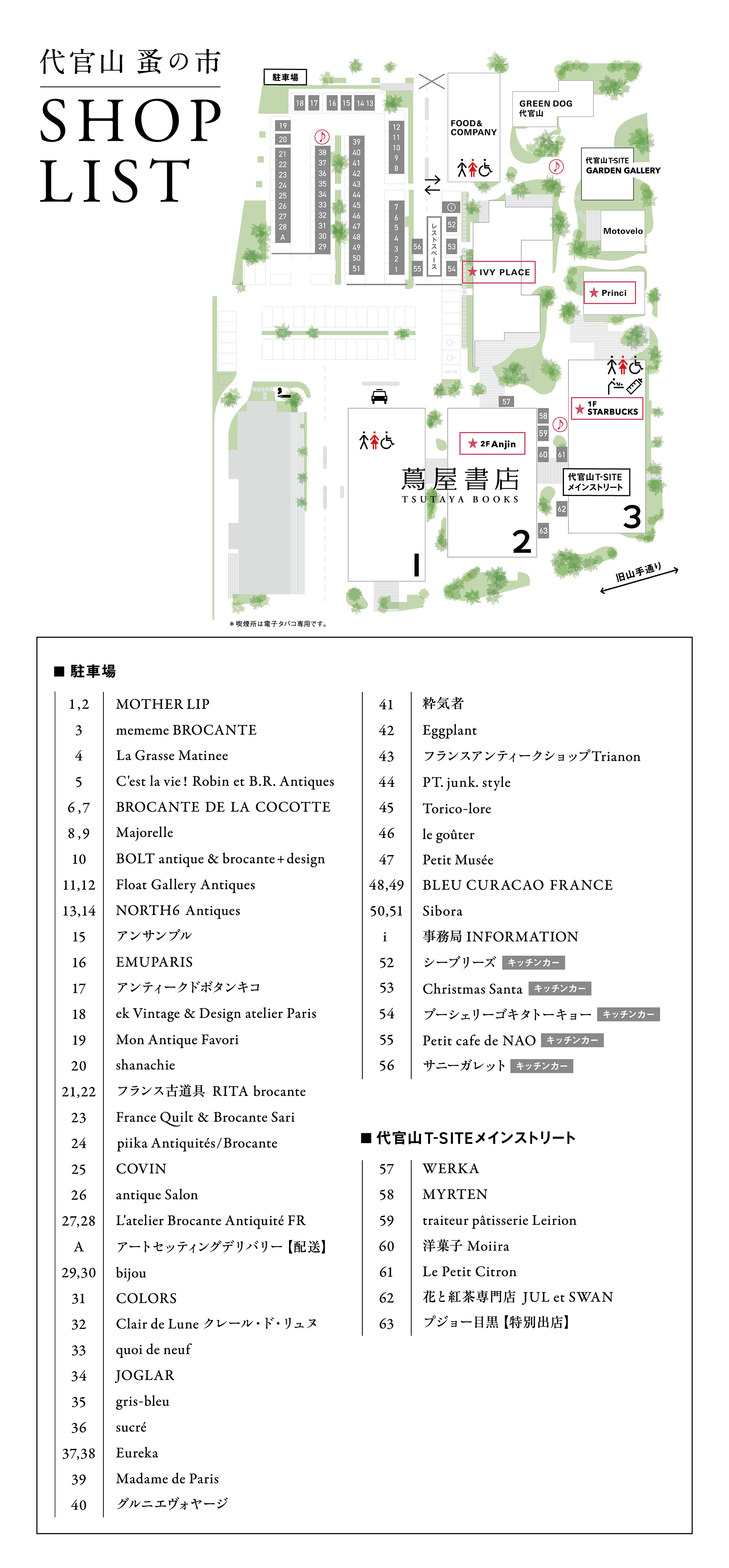代官山 蚤の市でのお買い物は、駐車料金割引の対象外となりますのでご了承ください。