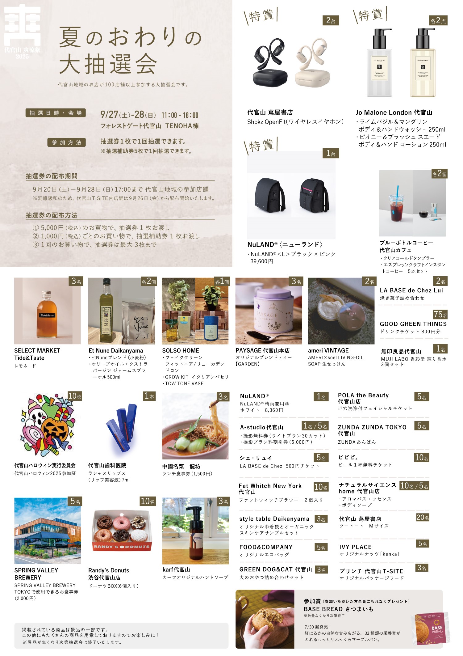 【イベント】代官山 爽涼祭 2025 ―夏のおわりの大抽選会