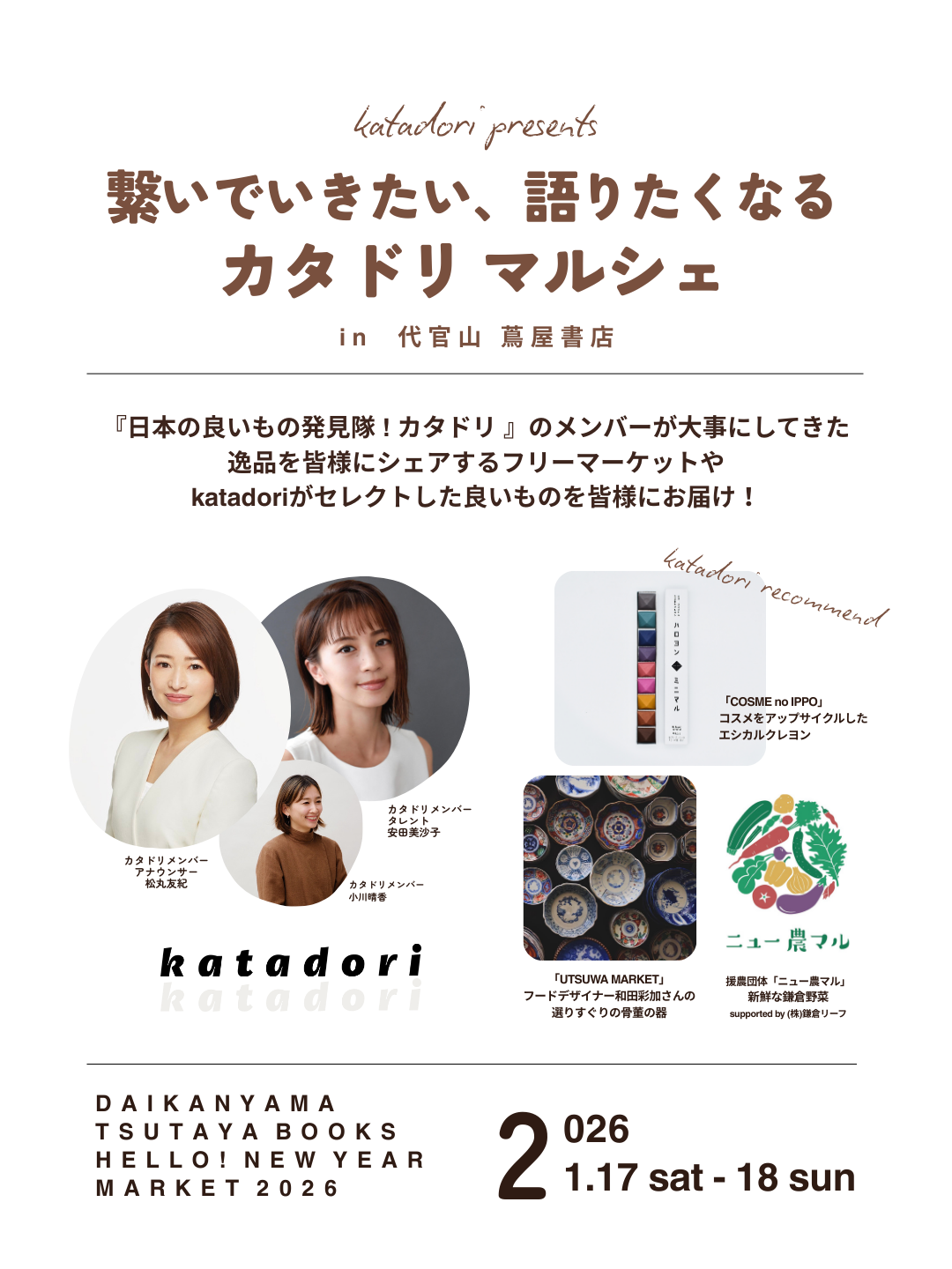 ‘katadori - カタドリ’は、 日本の良いものを後世に繋いでいきたいと、アナウンサー 松丸友紀、タレント 安田美沙子、TOUROU代表 小川晴香が立ち上げたプロジェクトチームです。