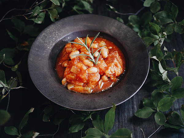美しさのあまり継母からの嫉妬心で城を追い出された白雪姫。苦難を乗り越えて、たどり着いたのは小人たちの住む家でした。小人たちは留守でしたが、テーブルにはスープが用意されていて、お腹がぺこぺこだった白雪姫はそのスープを食べて、ほっとしたのか眠くなってしまいました。小人たちと白雪姫が食べたスープをイメージした煮込み料理です。