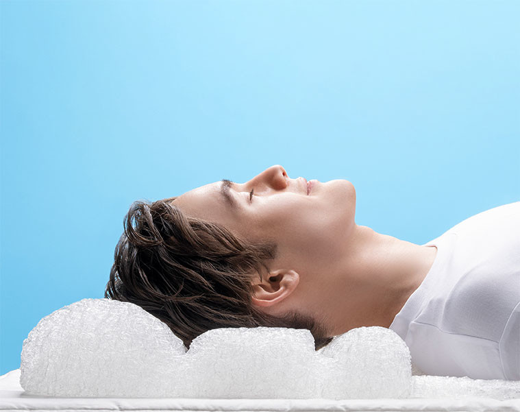 良質な睡眠を得るためには、寝床内の温度と湿度を適正に保つことが重要です。通気性のよい素材が頭部の熱を放熱し、深い眠りへ導きます。90%以上が空気層でできているので睡眠時に発生する熱や湿気がこもらず睡眠に最適な温度・湿度をコントロールし、快適な睡眠環境をつくります。ウレタン素材やフェザー素材の枕と比較して格段に優れる通気性の良さで朝まで快適に眠ることが出来ます。