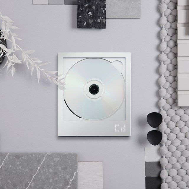 内部にCDジャケットを挿入し、写真やアートを飾るようにインテリアアイテムとして楽しめるCDプレーヤー。Bluetooth5.0、リチウムイオンバッテリーを搭載し連続7-8時間の連続再生が可能です。蔦屋家電オリジナルカラーのSilverをご用意しました。