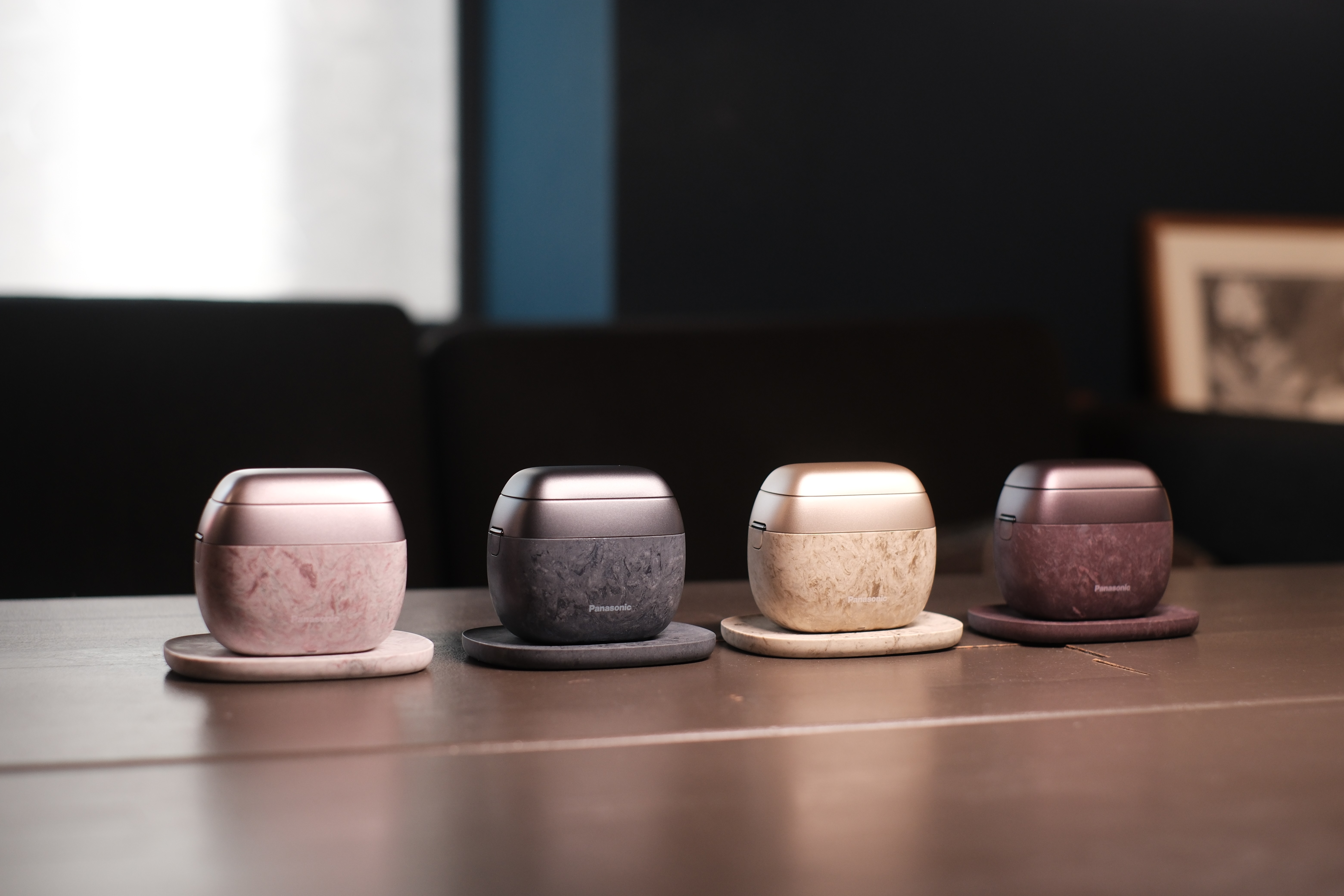 その5枚刃テクノロジーを凝縮し、手のひらサイズに収めた「ラムダッシュ パームイン」は、自然由来の素材NAGORI®を採用した上品な石目調デザイン(ES-PV70/ES-PV6A)で空間・暮らしになじみ、