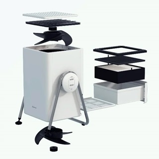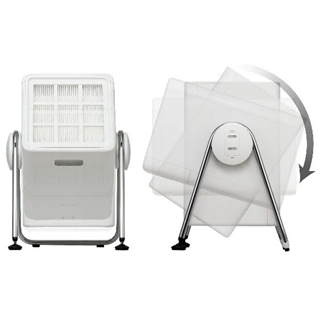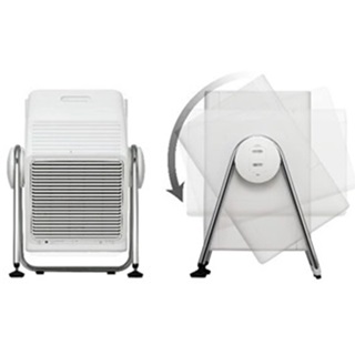下方から上方まで、約240度回転する自由な風向き調節が可能です。サーキュレーターのような風向きを作ることで清浄された空気を遠くに届ける、吸気口を向け汚れた空気を吸うことが可能となり、効率的に空気を動かし、まるで空間掃除機のようにお部屋を清浄します。花粉の時期には玄関に持って行き、服に付着した花粉やホコリを身体に向けて清浄・吸引することで除去する、併せて玄関開閉時に侵入した花粉やホコリなどを除去し、部屋になるべく持ち込みにくくすることもできます。