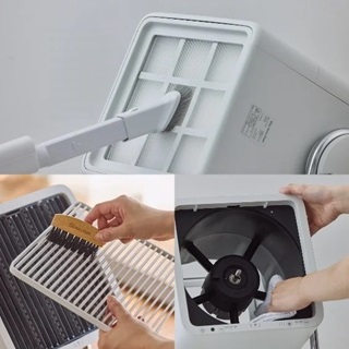 ホコリなど大きい汚れを集じんするプレフィルターはホコリが付着し溜まりやすいですが、「Silky Wind Clean」は吸気口が1箇所に集約され、本体サイズが小さく吸気口も小さいため掃除する手間も少なく済みます。本体をちょうど良い角度に調節し、フィルターを掃除機で吸えるため、手軽に定期的なお手入れが可能です。