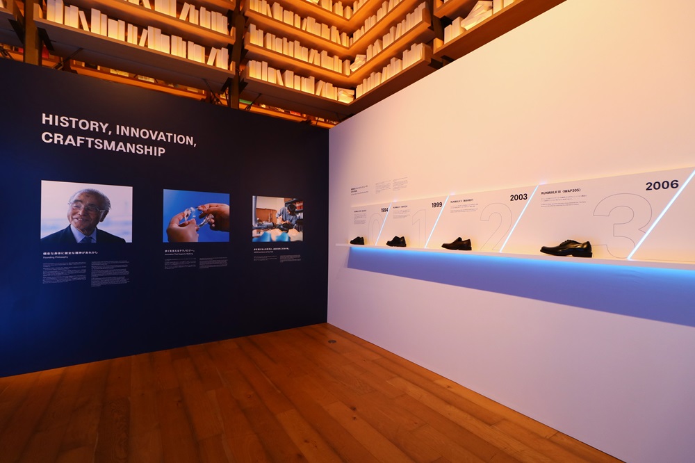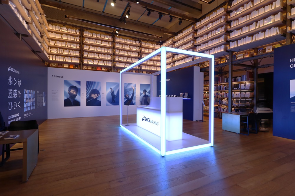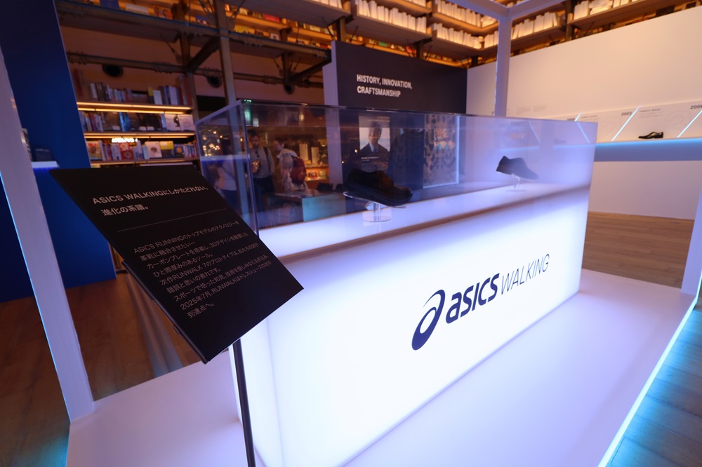 会場では、五感をテーマにしたビジュアル展示や、アシックスの創業者である鬼塚喜八郎の理念・歴史を紐解く展示、RUNWALKのモノづくりを紹介する製品展示を実施した。また、銀座 蔦屋書店のブックコンシェルジュが監修する「歩く」にまつわる書籍の展示も行い、文化的・知的な切り口からも「歩くこと」の魅力を提案した。