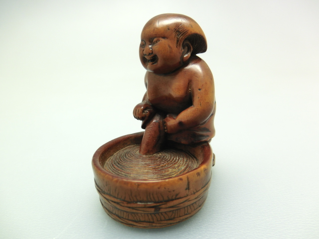 「行水図時代根付」 木刻 江戸後期(18世紀)