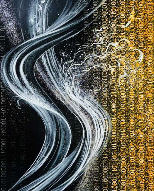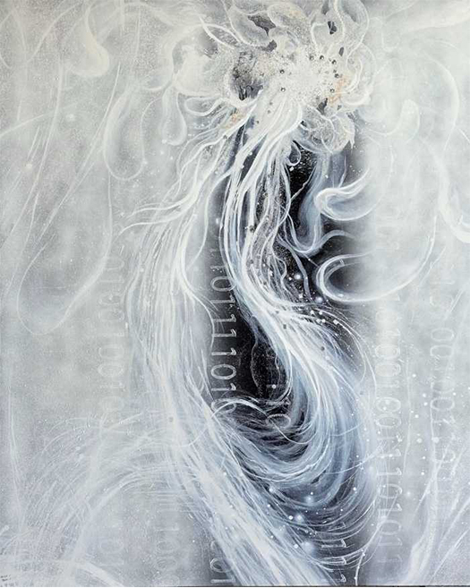 《魂の再生(デジタルの海を漂う愛)》WE-1 REBIRTH OF THE SOUL(LOVE FLOATING IN THE DIGITAL SEA)/WE-1/ ACRYLIC AND JAPANESE SILVER ON CANVAS/1621×1303mm/2024