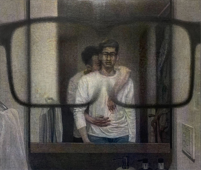 「Your glasses」/パネルにジェッソ、 鉛筆、透明水彩、 ニス/606×727mm /2025