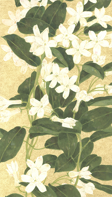 「シロノジャスミン」、2025、333×190mm、金箔定色、典具帖紙、岩絵具、神郷紙