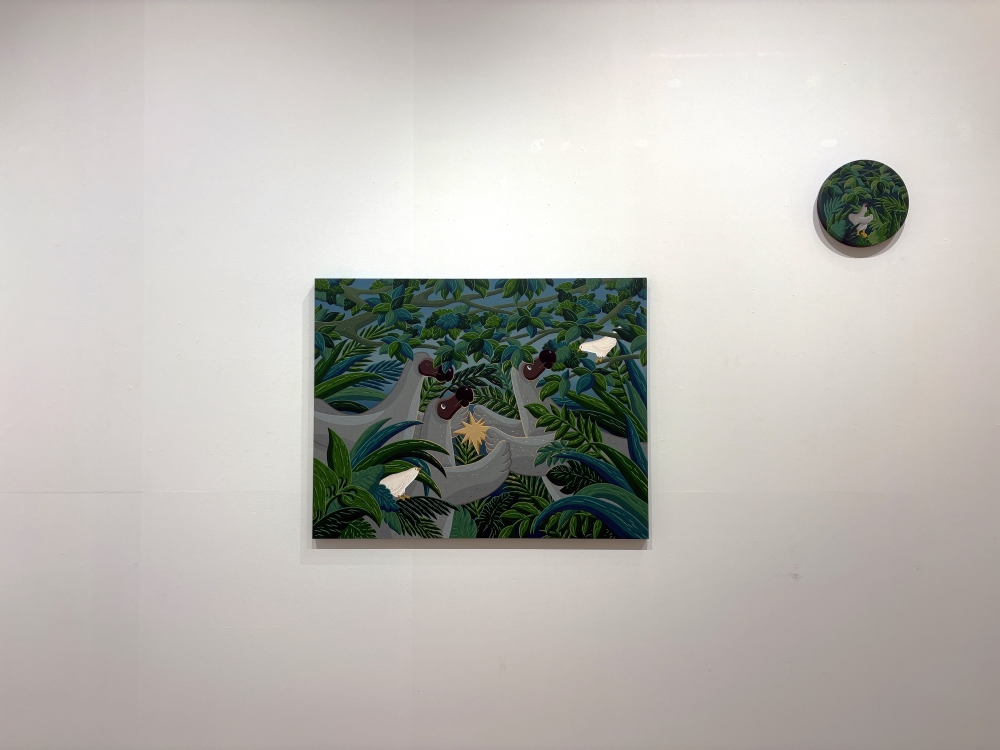 キム・ソンウは、絶滅した鳥「ドードー」を主要なモチーフとして作品制作を続けている。かつてモーリシャス島に生息し、外敵のいない環境に適応する中で飛ぶことをやめたドードーは、人間の手によって絶滅した。「飛べない残念な鳥」として知られるドードーですが、彼の作品に登場するドードーは、再び空を飛ぶ可能性を秘めた、新たな希望の象徴として描かれる。彼はこのドードーを通じて、現代社会で私たちが知らずに手放してしまっている「可能性」や「夢」について問いかけ、あきらめずに歩み続けることの大切さを語りかける。
