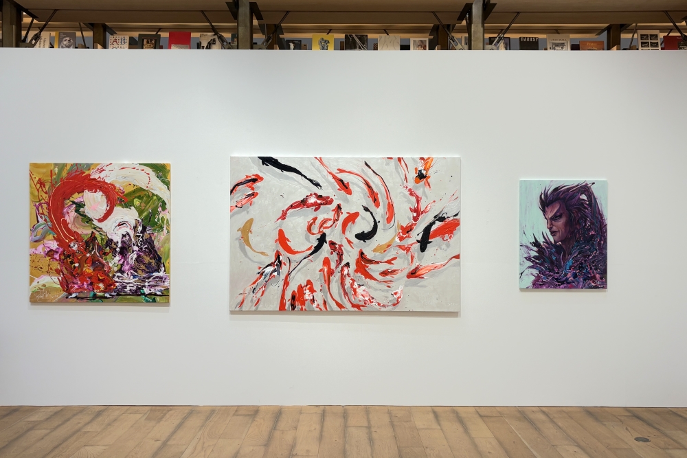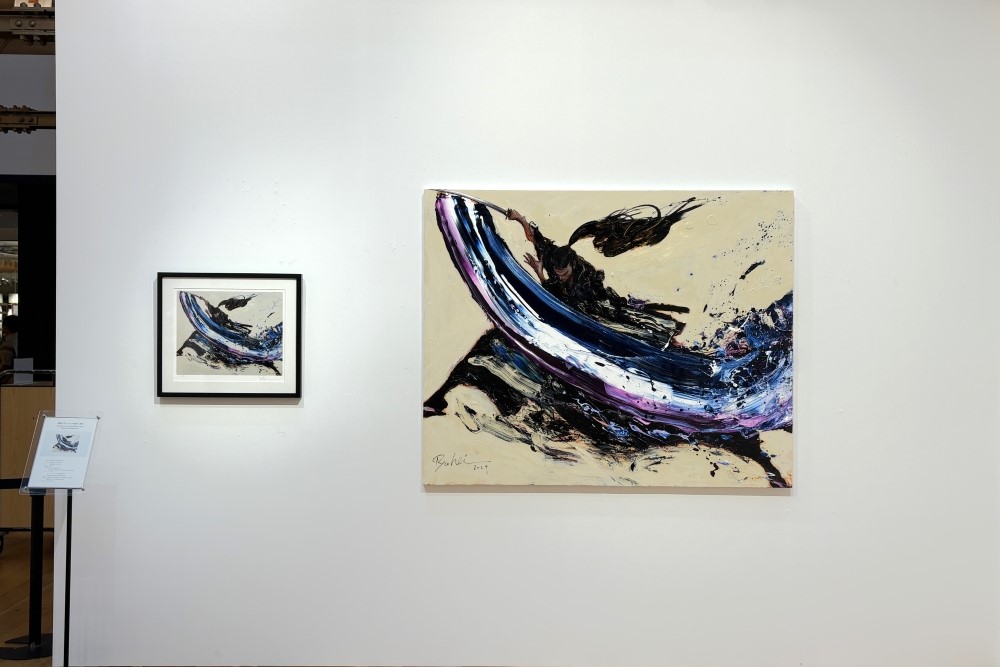 山下良平は、人の動きやエネルギーの中に潜む美を、大胆な構図と筆致で描くアーティスト。かつて自身にアスリートとしての経験があることから、アスリートのイマジネーションを風景に置き換えたり、四季がもたらす心情や感情をテーマに選ぶなど、躍動美から生まれるさまざまな瞬間を表現している。近年コンセプトとして掲げている「Energyism」は、「エネルギー(Energy)」と「アート(Artism)」を組み合わせた造語的な表現のもと制作した新作を中心に展開した。また、代表作《Samurai 12》のネオシルク版画を本展に合わせて制作した。オリジナル作品が持つ迫力と躍動感を、最新のプリント技術によって版画として精緻に再現した。
