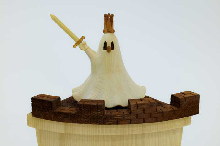 作品集に収録される5編のストーリーの象徴的なシーンを、ジオラマ風の木彫にしました。作品1点ずつで見ると各ストーリーの世界が、また5点組み合わせて円型に配置すると、絵本全体の世界が浮かび上がります。手彩で1つずつ彩色している温かみを感じてもらえたら嬉しいです。(アーティストより)