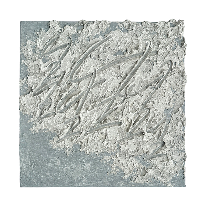 今回展示される「生きる」シリーズは、「生」という文字を様々な書体でいくつも書き重ねることで、人が経験を積み重ねながら人生を形作っていく過程を表現した作品群です。また、時間とともに繰り返される生命の連続や、過去・現在・未来の生命の重なりを可視化しています。