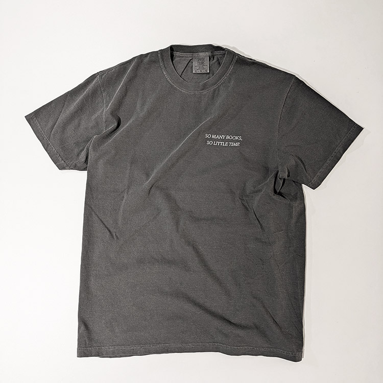 ・【BLANKMAG × GINZA TSUTAYA BOOKS】"SO MANY BOOKS, SO LITTLE TIME" PIGMENT DYED S/S TEE(BLACK) ¥6,000 +tax