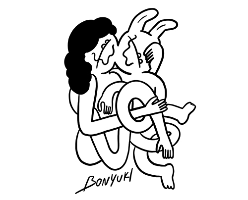 BONYUKIは人間の不完全さや曖昧さを肯定し、それを讃えることを制作の大きなテーマに掲げて制作活動を行っています。作品の特徴として挙げられる“ずれている目”“ぎこちない体の動き”はBONYUKIの作品テーマである人間の不完全さをより視覚的に鑑賞者へ提起します。