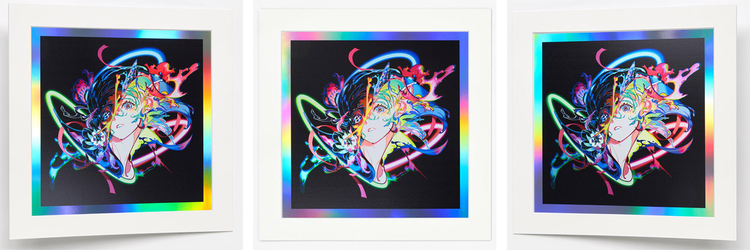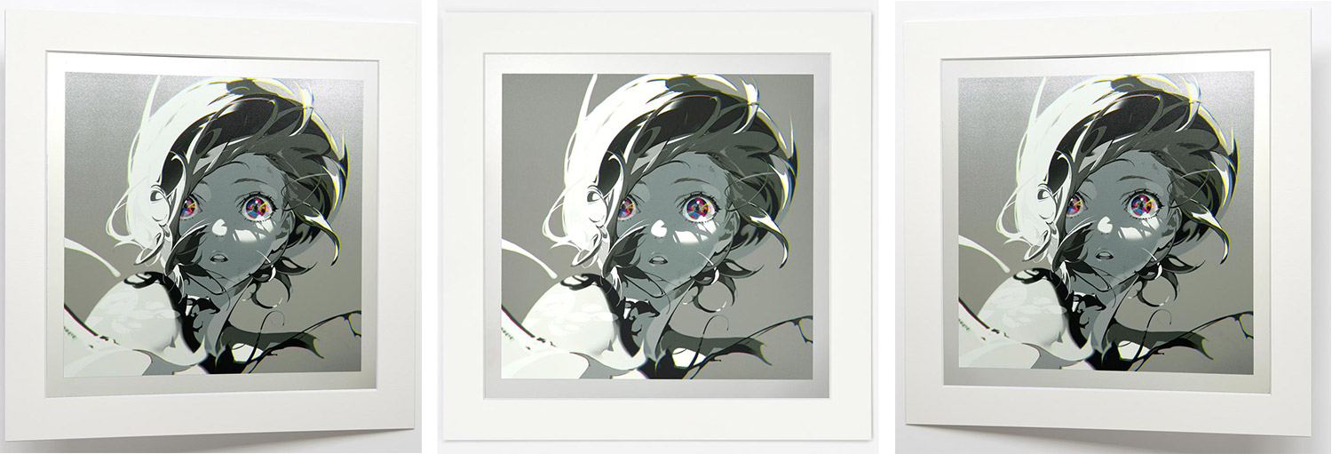 鋭さと繊細さを併せ持つ唯一無二のビジュアル表現で、国内外から高い注目を集めるイラストレーター/アニメーター・米山舞の作品を、高品質プリント技術で体感できる「YONEYAMA MAI AuraPrints POP-UP」を開催いたします。本企画では、大日本印刷株式会社(DNP)が手がける高精細プリント技術「AuraPrints」を用いた作品を展示・販売。銀色やホログラム調の輝きをもつ特殊用紙にUVインクを重ねることで、光の反射や質感までも作品表現として昇華させ、原画やアートピースに迫る存在感を実現しています。プリントの光沢感は作品ごとに緻密にコントロールされ、視点や照明によって表情を変えるビジュアルは、デジタルとフィジカルの境界を越えた新たな鑑賞体験をもたらします。会場では、北米を中心に高い評価を得てきたAuraPrintsシリーズの中から、厳選されたラインナップを展開。米山舞が描く「変容」「発光」「存在」のイメージを、ぜひ会場にてご体感ください。