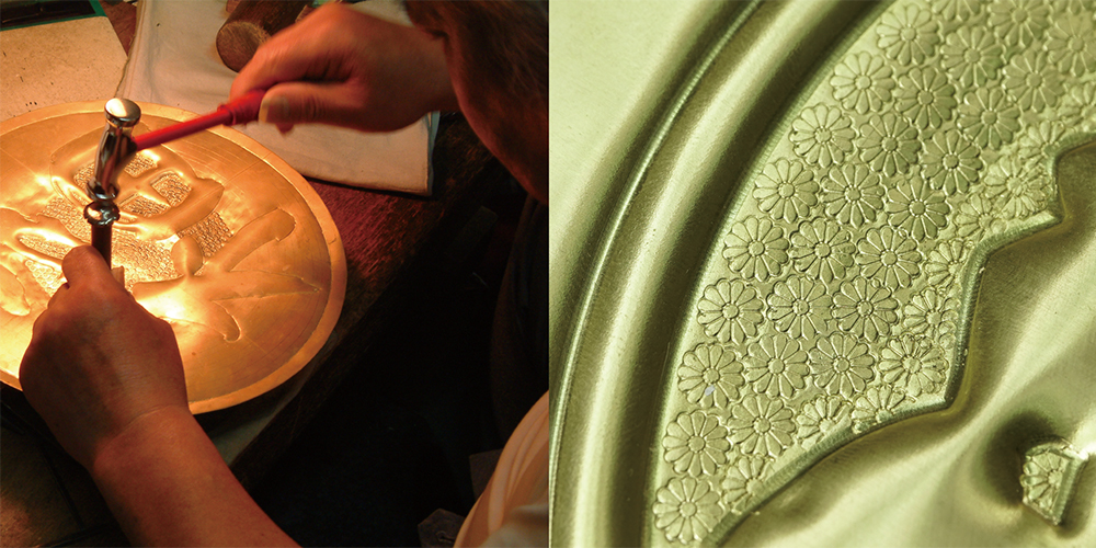 京都で培われた伝統的な金属工芸技術と、独自の技法を用い、旗金具や祭礼具などの金属製品の制作を行っている仁科旗金具製作所。歴史的背景を重んじたモノづくりと確かな技術で、長年ハレの日の多くの人の笑顔を支えてきました。