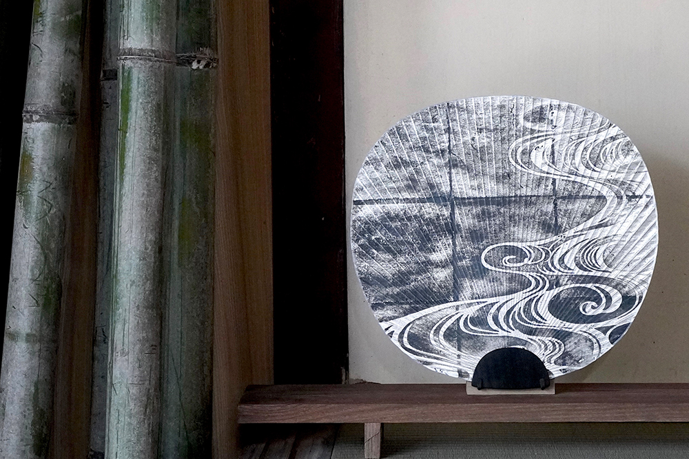 また蜂屋うちわ職店のうちわは、扇いで使うだけでなく、飾っても素敵なのが特徴的。日用品と美術品の境界を問い直す大胆かつ繊細なデザインが、お部屋の雰囲気をきゅっと引き締めてくれます。