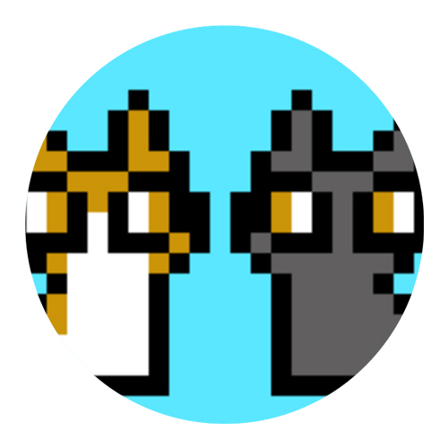 レトロゲームを想起させるようなノスタルジックなドット絵で描かれた2匹の猫「ユメちゃん」と「大吉」。