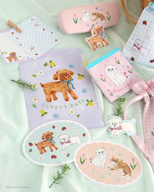 5月11日(月)より開催する利光春華作品展「Animal Days」では、インスタグラムで募集したペットを中心に、実際に存在する動物たちの姿を描いた作品が集まります。本展では原画作品や文房具アイテムのほか、ギフトにもぴったりなイラストの形をしたお菓子缶などのグッズもご用意いたしました。また、会期中には似顔絵イベントの開催も予定しております。