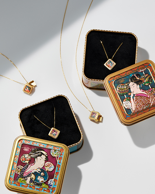 グルテンフリーやプラントベースのヘルシースイーツにこだわるスイーツブランド。今回の蔦屋書店限定品は、青山デカーボのお菓子缶『お江戸ネコ缶』から生まれたネックレス。ロケットの仕様のネックレスには、缶の蓋面、側面に描かれたデザインをそのまま閉じ込めました。 -