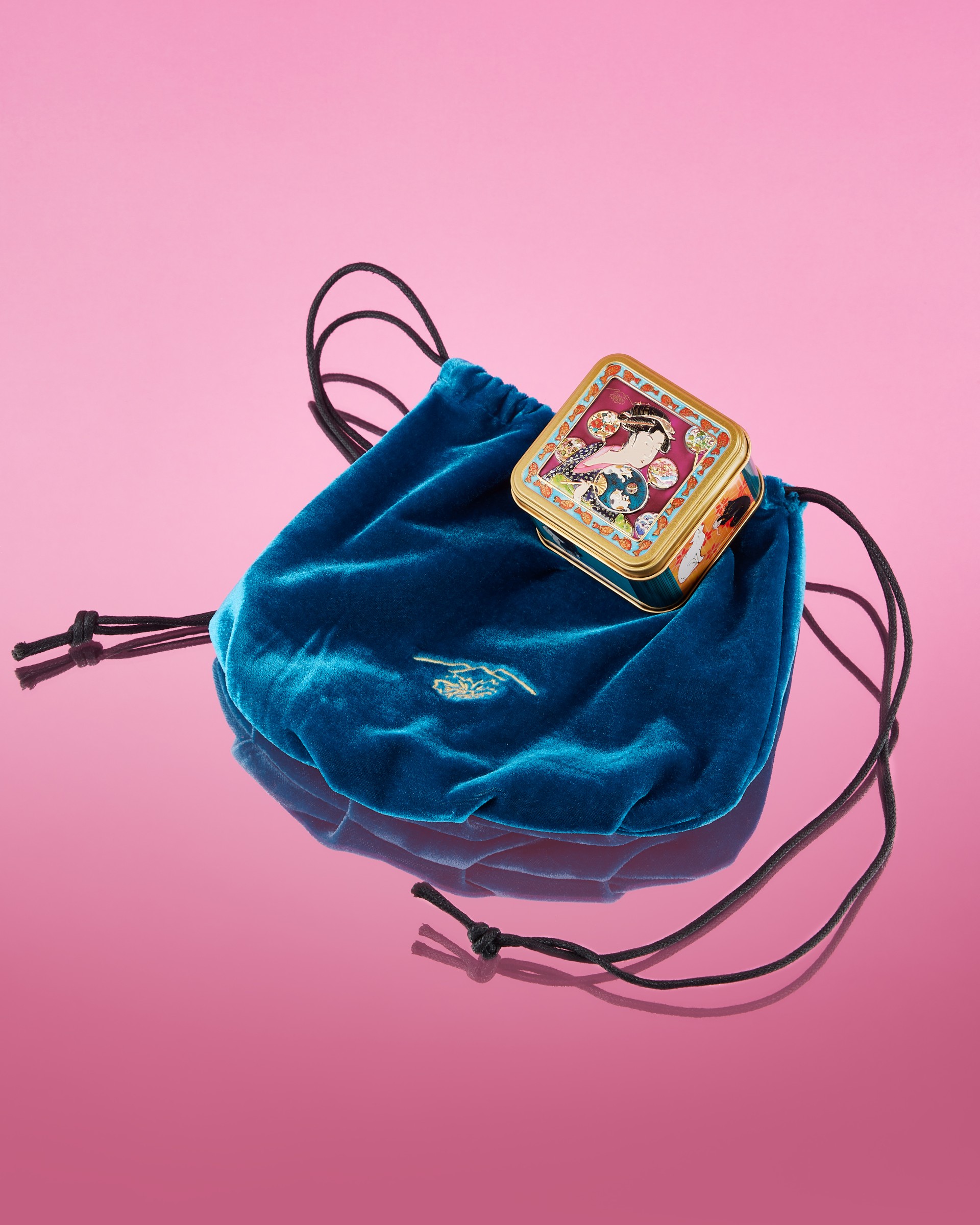 グルテンフリーやプラントベースのヘルシースイーツにこだわるスイーツブランド。今回の蔦屋書店限定品として、蔦重缶第二弾「お江戸ネコ缶」用のお江戸ネコ巾着もご用意しました。ベロア生地に、「お江戸ネコ」と蔦屋重三郎が多くの才能を伝えたとされる「耕書堂の屋号」の刺繍が施されています。 -