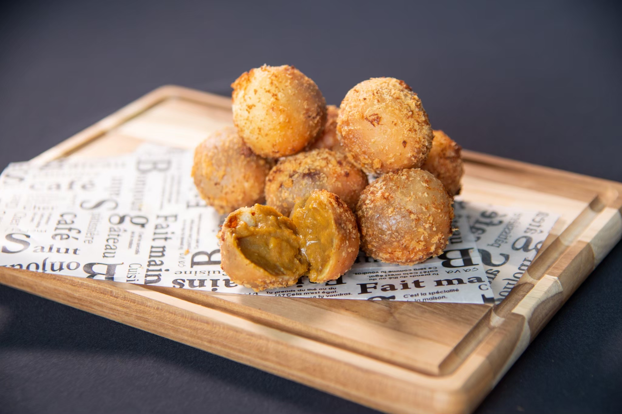 程よい辛みと共にやわらかな味も感じる、食べやすいバランスの取れた味に仕上げています。カレーパンを食べるときに一度は「重たい」「中身がこぼれてしまう」と感じた事があるのではないでしょうか。ここにフォーカスを当てたどり着いたのがお手軽に食べられる「ひとくちカレーパン」と、大きく口を開けない「スティックカレーパン」です。