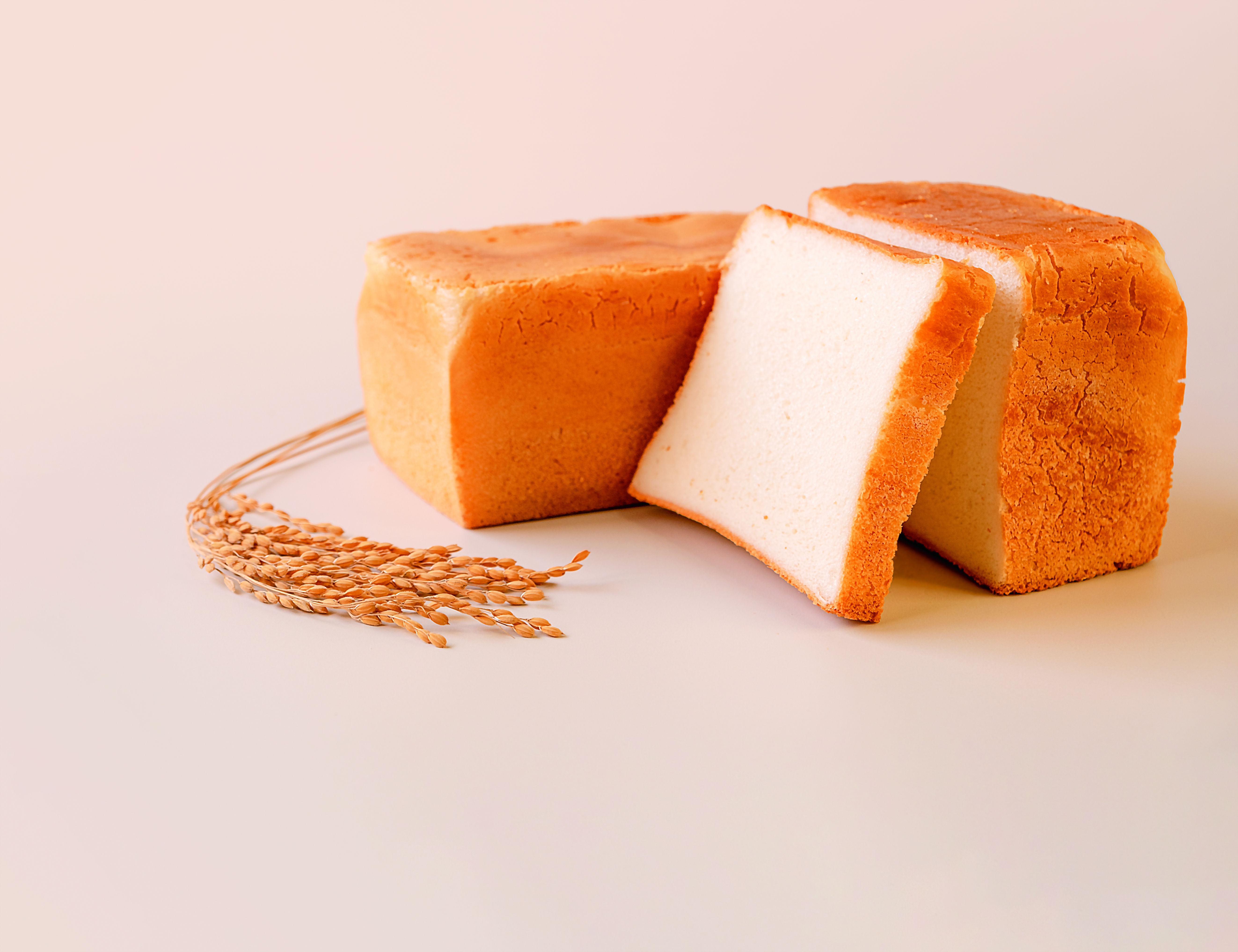 【匠シリーズ】極み角食パン:数種類の米粉を独自でブレンドし、卵、乳製品不使用、増粘剤などの添加物不使用、vegan対応の米粉100%の角食パン。噛めば噛むほどに味わい深い匠の逸品です。