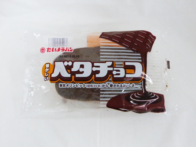 昭和39年・東京オリンピックの年に発売。開いたコッペパンに、バタークリームをサンドし、パンを覆い隠すほど大胆にチョコレートを塗っている。開いたコッペパンを閉じて食べるのが通の食べ方だとか…