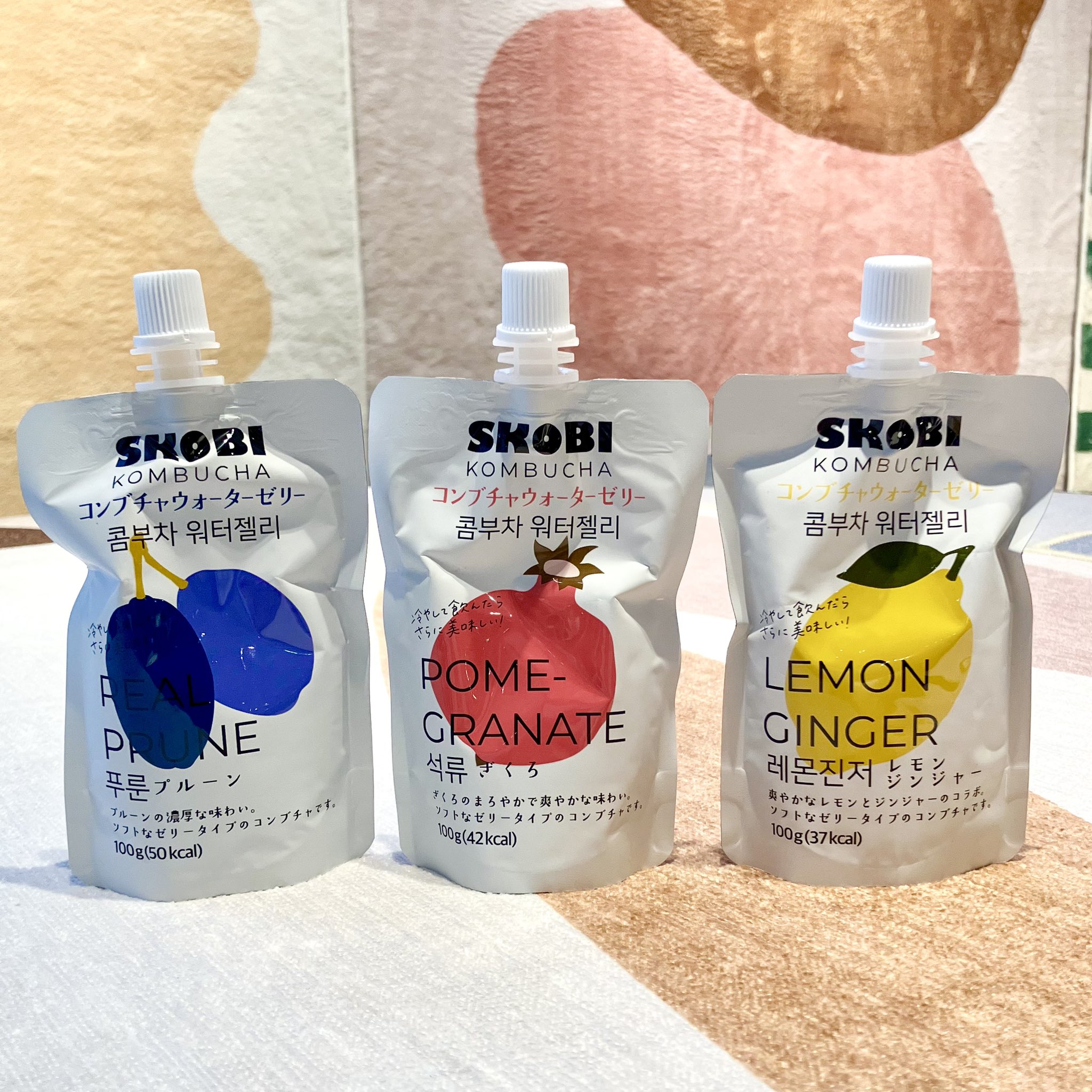 そのコンブチャをソフトなゼリータイプにしたコンブチャウォーターゼリーのプルーン・ざくろ・レモンジンジャーの3種類の中から1つプレゼントいたします。