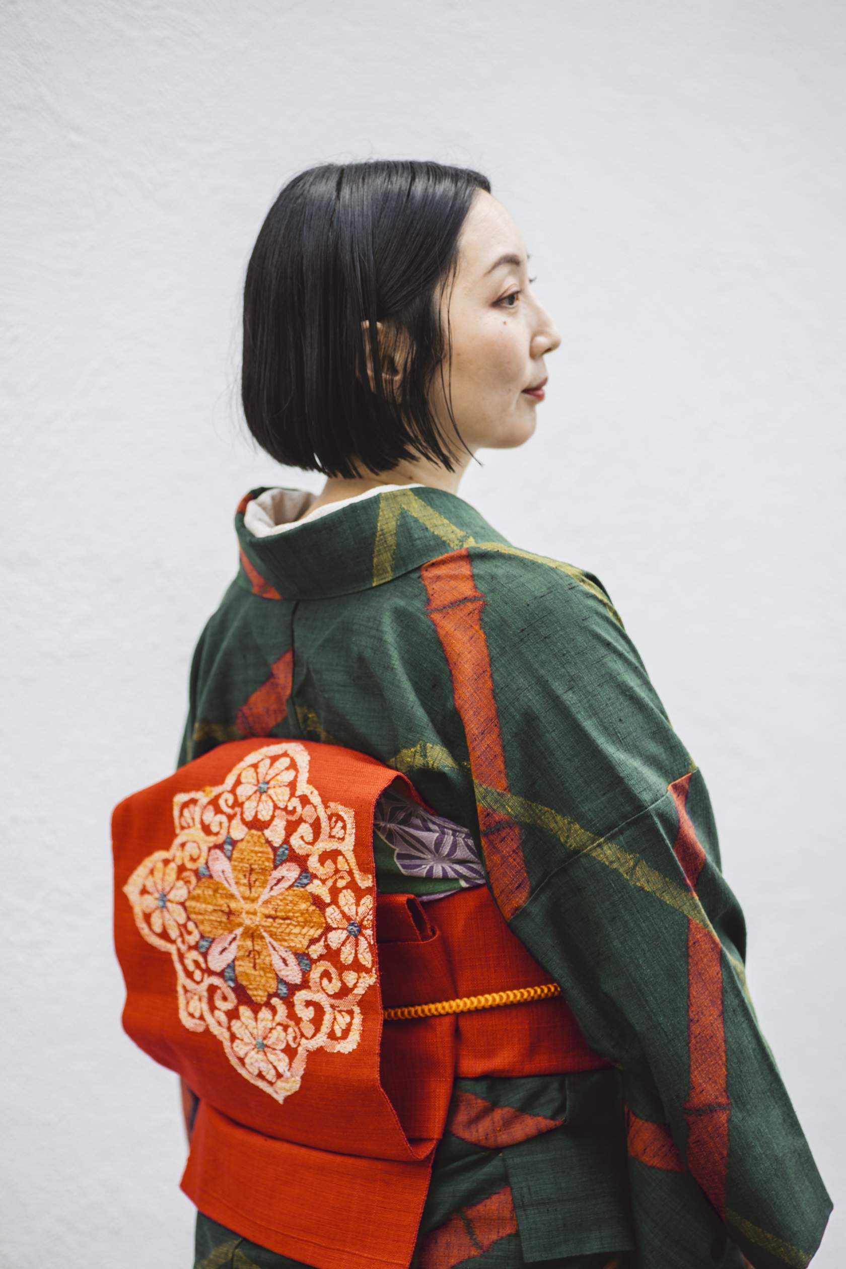 20代で着物と出会い、着付け教室に通って師範資格を取得。