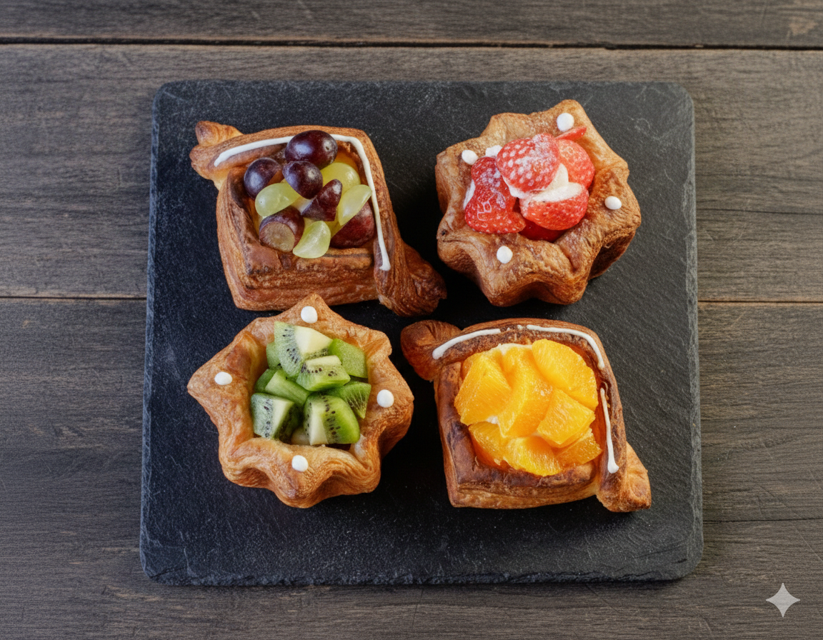 サクッと焼き上げたデニッシュに、フレッシュフルーツとクリームを合わせたモモチカ一番人気のパンです。