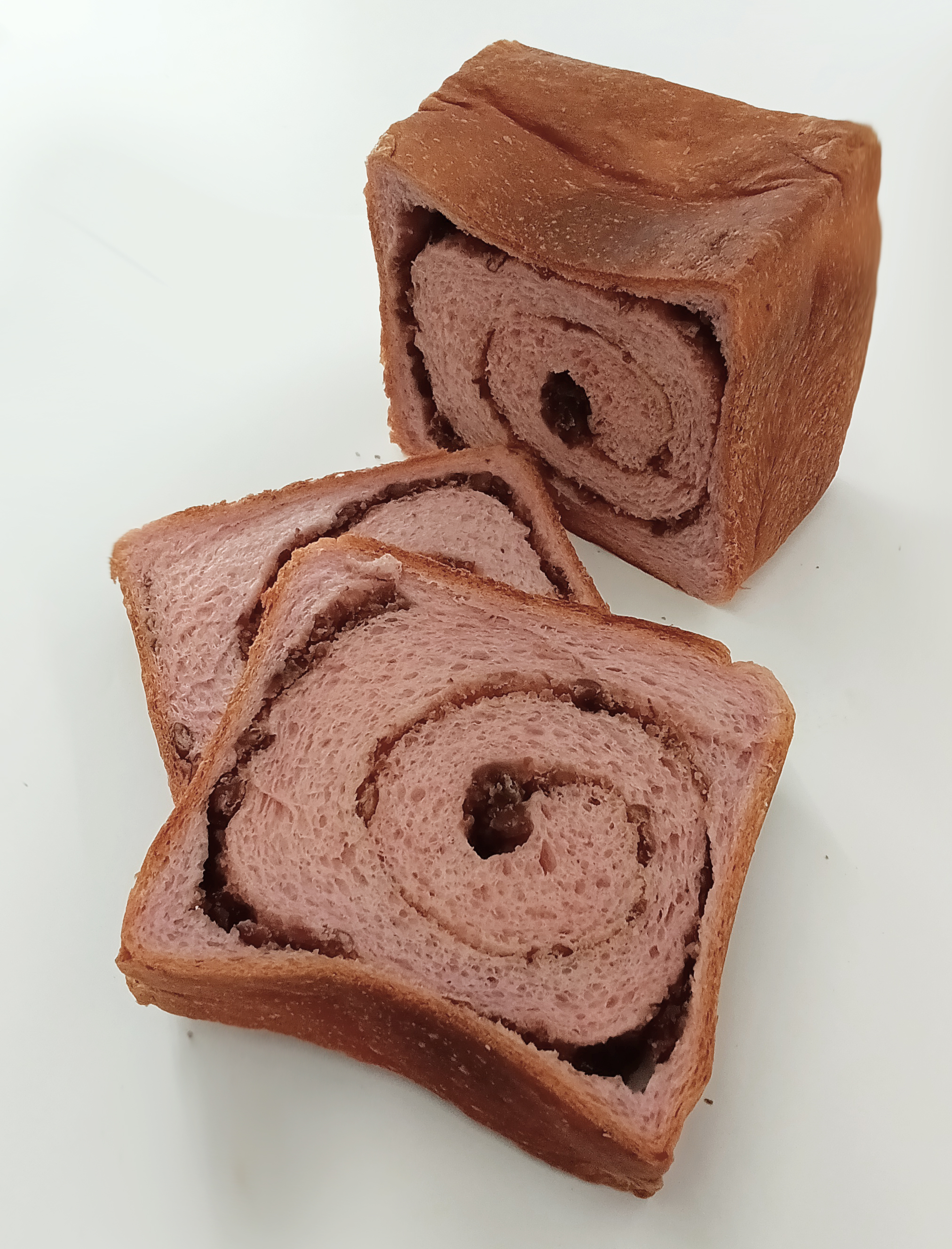 いちごあん食パン:国産小麦「春よ恋」にいちご果汁を混ぜ、粒あんを巻き込んで焼き上げた、いちご香る食パンです。