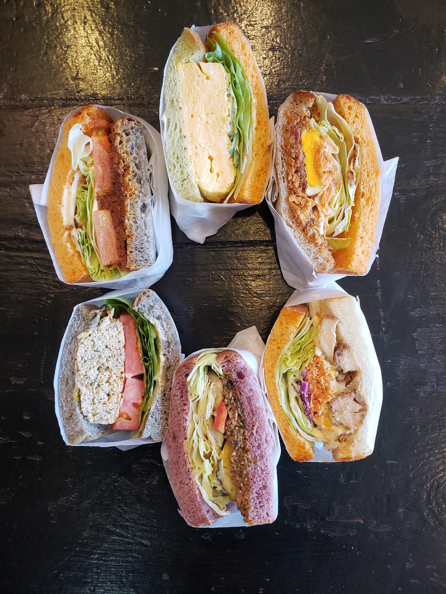 無添加でありながら彩り豊かな食パンに自家製具材を挟んだサンドイッチ
