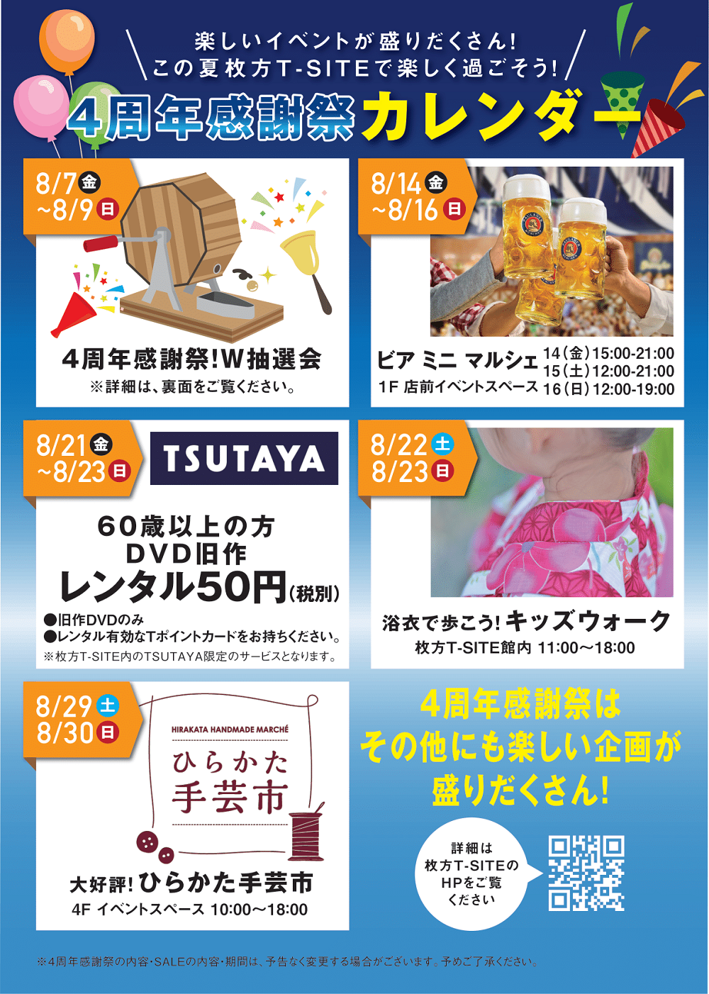 4周年感謝祭を記念して、T-SITEの各店舗にてお得なSALEやサービスを開催予定!