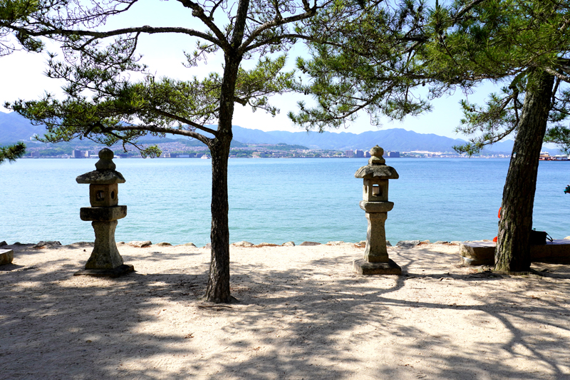 滝宮神社から二重の塔(多宝塔)を見て大元を通って町に出るじゃろ、そして御笠浜を歩いて帰るんよ。それが配達というか営業のルートなんじゃけど、御笠浜でゆっくり座って海を見たりするんよ。宮島の自然が大好きなんよね、何年見ていても飽きんです。
